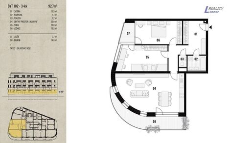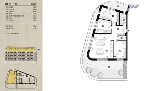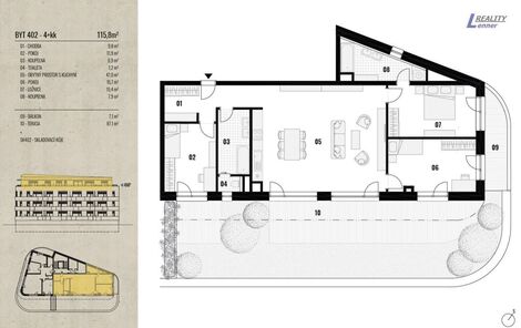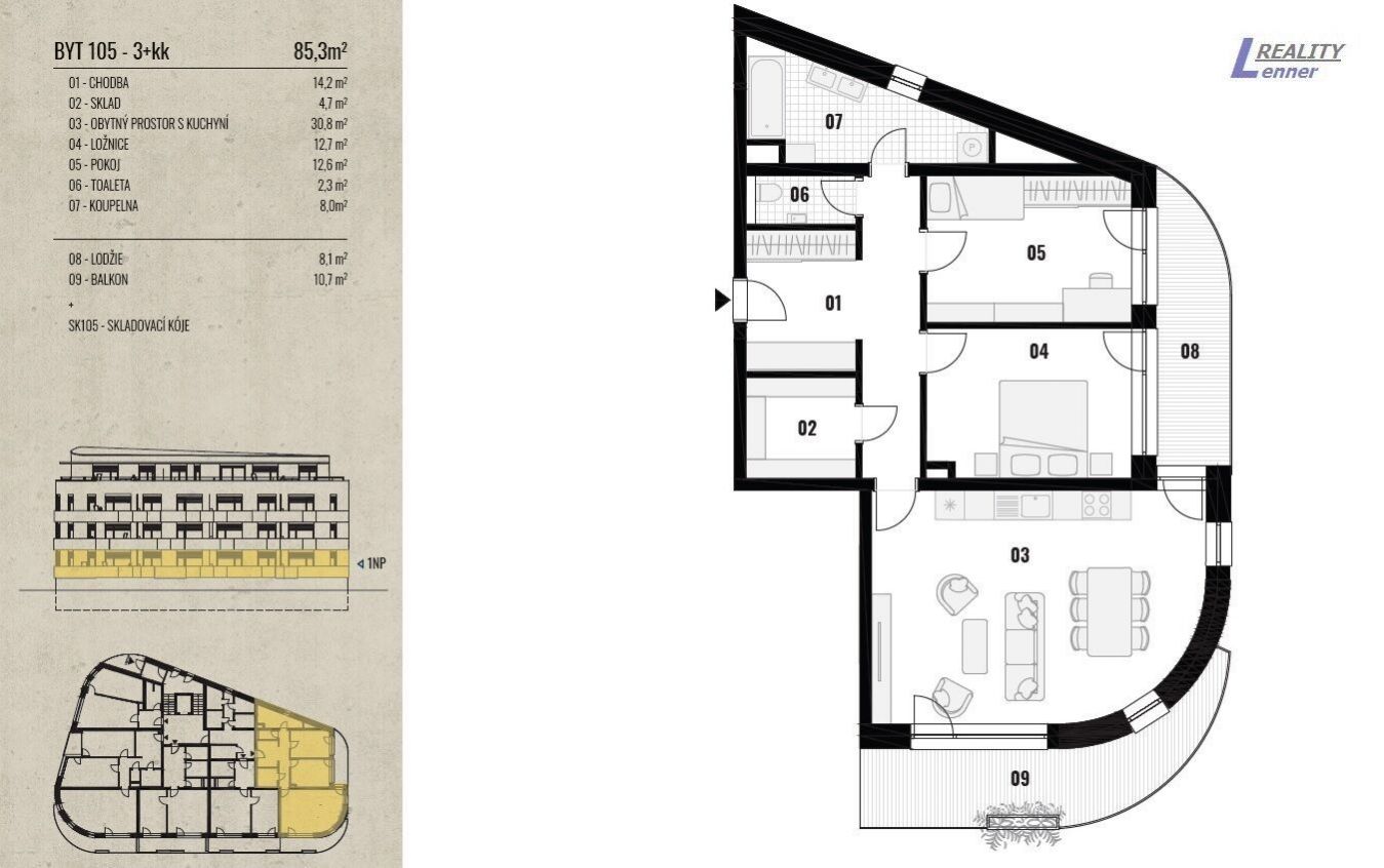 Nabízíme Vám zcela nový byt s balkonem, možností gar. stání a sklepem v novostavbě nyní nově budovaného byt. domu ,,Pod Jezem přímo u Brd, v malebném městečku Rožmitále pod Třemšínem, v ulici Nádražní. Jedná se o byt o dispozici 3+kk s příslušenství, který se bude nacházet v nově vybodovaném, moderním, byt. domě s názvem ,,Pod Jezem, který se nyní začíná stavět a je v plánu s dokončením v roce 2025-2026. Stavba je pojata jako moderní byt. dům, postavený stavební firmou Tomasy s.r.o. s několikaletou praxí a zkušenostmi v oboru výstavby velkých staveb s betonu (železobetonové konstrukce). Dům byl navržen architektem Ing. arch. Václav Čihákem z atelieru CV Architekt tak, aby splňoval moderní, úsporné bydlení současné doby. EPNB ve třídě B velmi úsporná budova. V bytovém domě s výtahem bude k dispozici celkem 17 byt. jednotek, každá vč. prostorného balkonu případně terasy, vlastního gar. stání a sklepní koje. Více informací ohledně půdorysů a výměr bytů najdete na stránce projektu: bytovydumpodjezem K dispozici jsou bytu o velikosti 2+kk od 46 m2, 3+kk, až po 4+kk s výměrou až 116 m2 (plus prostorná terasa 66,6 m2 plochy) ve 3. patře byt. domu. V ceně bytu budou: sádrové omítky opatřené bílou výmalbou, kvalitní dřevěné třívrstvé podlahy v dekoru kouřový dub, v kuchyni a příslušenství kvalitní dlažba Rako 60x60 cm, zařízené koupelny v designové řadě Siko Japandi, int. dveře Sapeli elegant komfort (bílé, lakované), kvalitní hlinková okna s izol. trojskly a venkovními AL. žaluziemi, podlahové topení, topný žebřík v koupelně, rozvody vzduchotechniky, v bytech ve 3. patře splitové klimatizační jednotky dle požadavku klienta, atd. Dům bude postaven z betonu (železobetonová konstrukce) se 4 nadzemními podlaží a jedním podzemním podlaží pro gar. stání ke každému bytu a sklepní koje. V domě bude výtah střední velikosti. Před domem pak další parkovací stání, dostatek zeleně a klidová zóna s pergolou a posezením. Byty již nyní v prodeji. Některé již zarezervovány, více info u RK. Výhodou pro zájemce nyní je, že v případě rezervace a výběru bytu hradíte jen rez. poplatek na vnitřní účet financující banky investora. Doplatek bytu by byl až p kolaudaci byt. domu v roce 2025 -2026. Výhodné financování bytů můžeme zajistit vlastním finančním oddělením projektu za velmi výhodných podmínek, více info u RK. V místě kompletní obč. vybavenost. Velmi dobrá dostupnost z Prahy a Plzně. Krásné okolí díky CHKO Brdy. Byty jsou tak ideální i vhodnou investicí např. pro pronájem (zdarma vyřídíme), případně pro klidné a pěkné rekreační využití. Aktuálně zarezervované byty: 104, 201, 203,204, 301, 303, 304. Více info u RK. <a href="https://www.eurobydleni.cz/rekreacni-objekty/chalupy/kolin/obec-kourim/prodej/"><strong>Prodej chalupy Kouřim</strong></a>