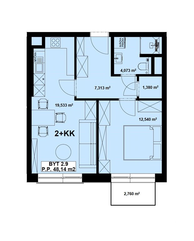 Prodej, byty/2+kk, 50 m2, Ke křížku 977, Dubí, 27203 Kladno, Kladno [ID 65658]