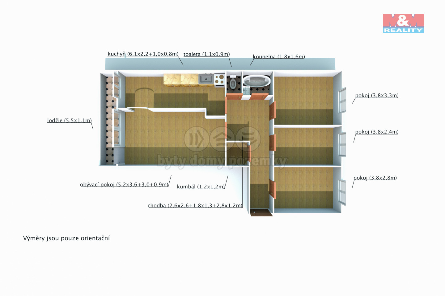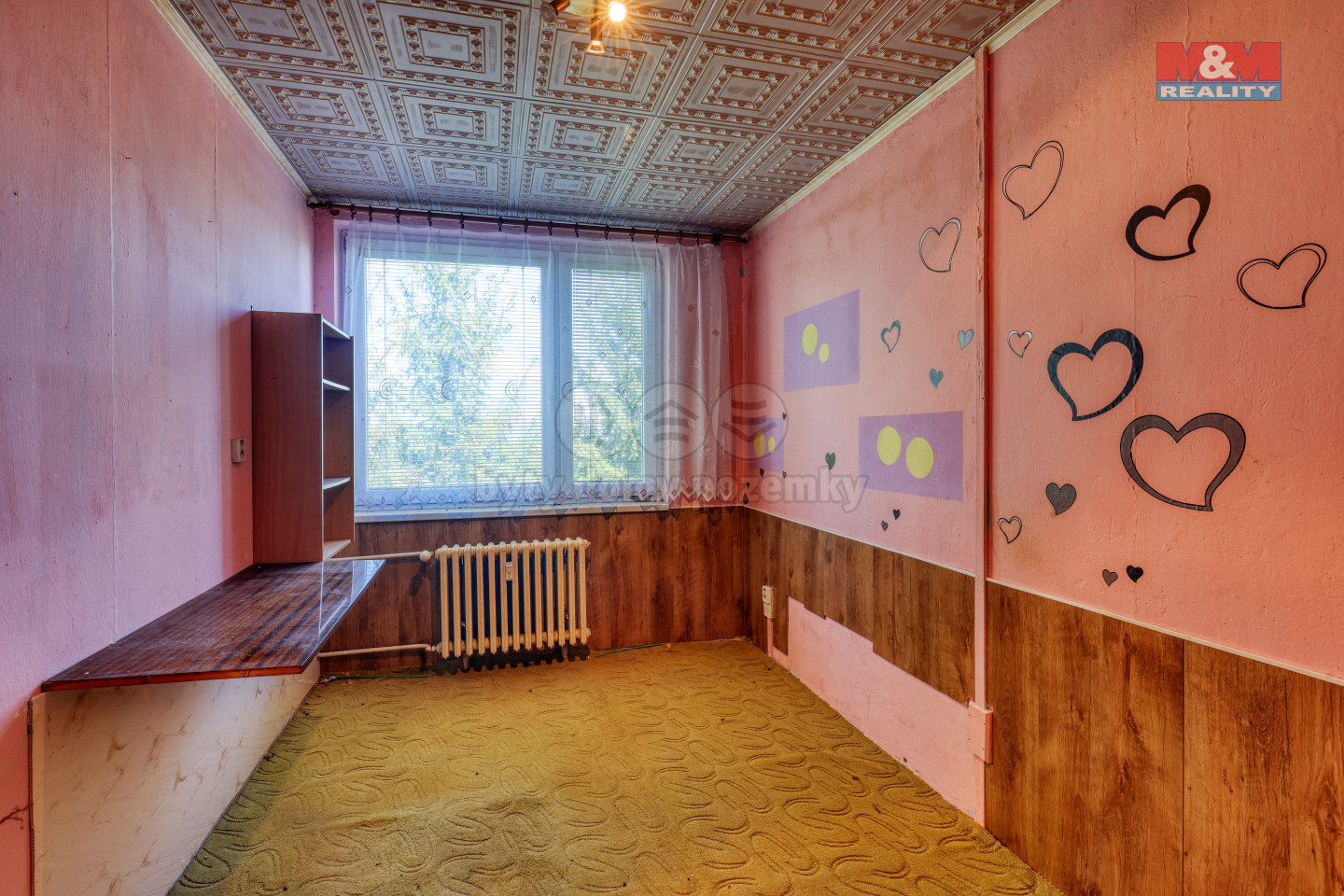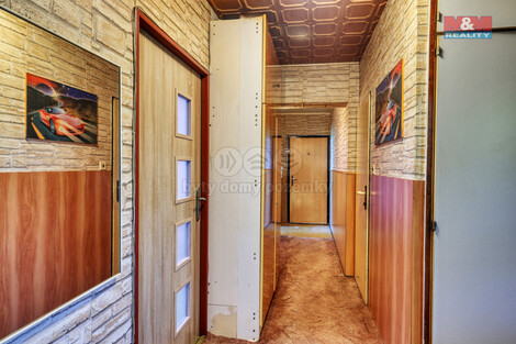 Nabízíme prostorný a slunný byt 4+1 o celkové podlahové ploše 84,8 m2 včetně lodžie o velikosti 6 m2 situovaný ve 3. nadzemním podlaží malého revitalizovaného panelového domu v Hostomicích. Byt nabízí ideální zázemí pro rodinu či jako investiční příležitost. Interiér zahrnuje prostornou kuchyni propojenou s obývacím pokojem a vstupem na jižně orientovanou lodžii (6m2) s výhledem do zeleně. Tři ložnice směřují na sever, což zajišťuje příjemné klima. Koupelna s vanou a samostatné WC. Součástí bytu je také praktická komora a sklep. Parkování je zajištěno na bezplatném parkovišti u domu. Hostomice nabízejí veškeré základní služby a výborné dopravní spojení. Hostomice-exit dálnice D4 (Dobříš) 13km, Hostomice-exit dálnice D5 (Zdice) 15km, Hostomice- Beroun Husovo náměstí 23km. Neváhejte a domluvte si s námi termín prohlídky bytu.