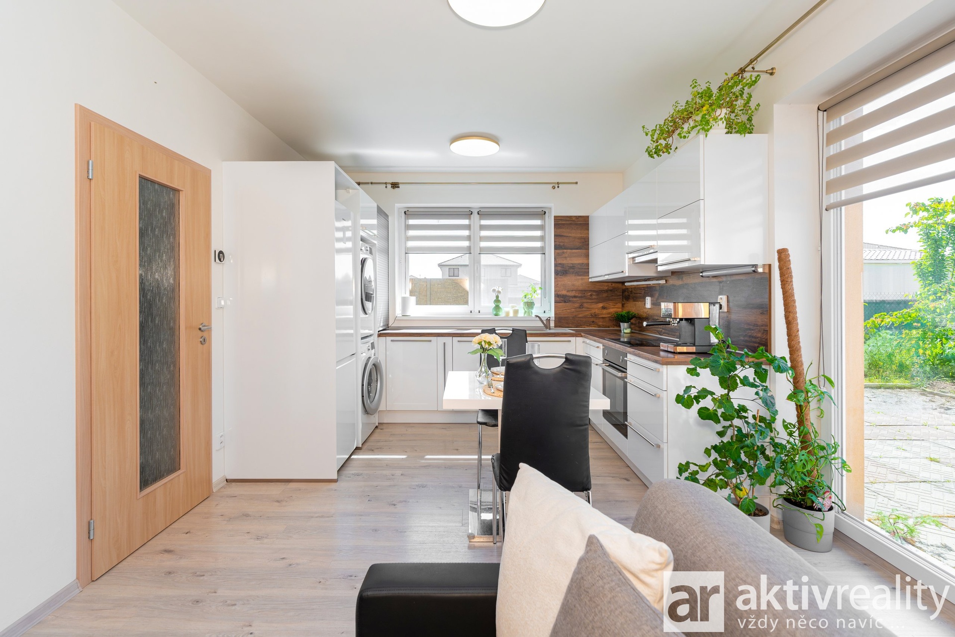 Pokud hledáte bydlení se zahradou v ceně bytové jednotky 4+kk v Praze, tak jste tu správně. Tato nemovitost je skvělou volbou pro ty, kteří hledají moderní a komfortní bydlení v klidném prostředí s vlastní zahradou. Pokud tedy dojíždíte za prací do Prahy, sníte o menší zahradě, terase a nechcete řešit, kde zaparkujete po návratu domů - je tato nabídka přesně pro vás. Exkluzivně Vám nabízím velmi pěkný a útulný byt s dispozicí 4+kk, který se nachází v klidné části obce Polerady a je obýván od 3/2022. Nabídka zahrnuje: - bytovou jednotku s užitnou plochou 74,9 m2 - dvě koupelny - vlastní zahradu o výměře 174 m2, která nabízí ideální prostor pro relaxaci a odpočinek - parkovací stání před domem - komoru - uzamykatelný úložný prostor (pro kola, sezónní vybavení) - 4,1 m2 Výměry jednotlivých místností: Přízemí: • Chodba - 2,8 m2 • Koupelna se sprchovým koutem a toaletou - 3 m2 • Obývací pokoj (16,7 m2) s kuchyňským koutem (8,5 m2) • Schodiště - 3,8 m2 Patro: • Chodba - 3,6 m2 • Dětský pokoj - 9,6 m2 • Ložnice - 11,1 m2 • Hostinský pokoj/šatna - 7,4 m2 • Koupelna s toaletou - 4,3 m2 Úložný prostor v podkroví bytové jednotky. Z obývacího pokoje je přímý vstup na zahradu. Toto řešení ve dnech s příjemnými teplotami rozšiřuje užitnou plochu bytu, kdy si zde můžete vychutnávat ranní kávu, ale i zde trávit většinu času (stolování, grilování s rodinou a kamarády). V Zahrada zajišťuje dostatek soukromí i uprostřed zástavby. Najdete zde místo pro relax a odpočinek. Bude záležet na preferencích nového majitele, jak si zahradu zútulní. Díky velmi dobrému stavu objektu a cihlové konstrukci budovy je zajištěna dlouhodobá kvalita bydlení. Měsíční náklady pro tříčlennou rodinu jsou zhruba 7.000 Kč měsíčně. Technické parametry stavby: - cihelné tvárnice, tl. 300 mm, zateplení 140 mm EPS 70 F - tepelné čerpadlo vzduch - voda (vnitřní i venkovní) - podlahy - laminátová podlaha + dlažba v koupelnách - žaluzie Den a Noc - funkční vnitřní rolety Vybavení, které zůstává: - kuchyňská linka včetně spotřebičů (myčka, pračka, sušička, mikrovlnná trouba, sporák s digestoří) - nábytek ve vstupní chodbě - ložnice a pokoj - šatní skříň + policový systém Komfort zajištuje podlahové vytápění v přízemí a v koupelnách. Ložnice a dětský pokoj jsou vytápěny deskovými radiátory. Dům je napojen na vodovodní řád a veřejnou kanalizaci. Velkoformátová okna poskytují dostatek denního světla po celý rok. Zvolené barvy - bílé tóny omítek, přírodní barvy, dřevěné schodiště zútulňují celý prostor a zanechávají příjemné pocity. Přijďte se přesvědčit sami. Tato nemovitost je skvělou volbou pro ty, kteří hledají moderní a komfortní bydlení v tichém prostředí s vlastní zahradou. Pokud tedy dojíždíte za prací do Prahy, sníte o menší zahradě, terase a nechcete řešit, kde zaparkujete po návratu domů - je tato nabídka přesně pro vás. Autem jste v Letňanech do 10 min - záchytné parkoviště P+R u metra. Ostatní dopravní spojení - železniční trať 074 Čelákovice - Brandýs nad Labem - Neratovice. Autobusová doprava - zastávky autobusových linek 377 (Praha,Letňany - Kostelec nad Labem), 417 (Brandýs n.L.-St.Boleslav - Hovorčovice/Odolena Voda) a 477 (Brandýs n.L.-St.Boleslav - Mratín - Brandýs n.L.-St.Boleslav). Mateřská školka se nachází v rámci areálu této výstavby. Ostatní služby se nachází v sousední obci. V Kostelci nad Labem je plná občanská vybavenost (MŠ, ZŠ, zájmové kroužky, pošta, lékař, Penny, drobné obchody a další služby) - to vše jsou plusy, které zvyšují atraktivitu této nabídky. Těším se na prohlídky.