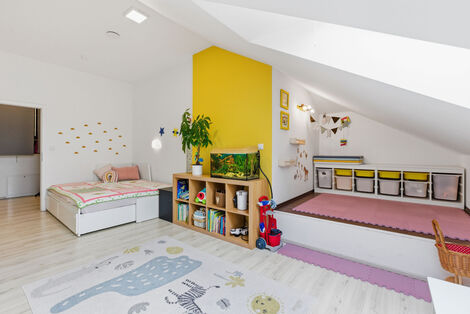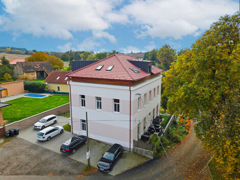 Krásně řešený Penthouse v novostavbě, o dispozici 4+kk, 158 m2 se skladovou kójí, společnou zahradou, dvěma parkovacími místy, výbornou dostupností do Prahy a přitom blízko přírody, v obci Čenětice - Křížkový Újezdec, Kamenice. Dispozici bytu tvoří menší vstupní hala, schodiště do velké vstupní haly (17,5 m2) se skladem (3 m2) a vstupy do ložnice (21 m2), obývacího pokoje propojeným s kuchyní a jídelnou (55 m2), koupelny s toaletou a sprchovým koutem (5 m2) a průchozí šatny (8 m2) do ložnic (21 m2) a (20 m2) a druhé koupelny s WC a vanou (5 m2). Dům byl kompletně zrekonstruován a druhé patro (kde se byt nachází) zcela nově vystavěno v roce 2020. V celém domě je pouze 6 bytových jednotek, 3 garsonky v přízemí, 2 byty v prvním patře a jediný největší byt ve druhém poschodí. V bytě je podlahové topení (centrální teplovodní), rekuperační jednotka (Zehnder), okna trojskla, osvětlení LED, podlahy dlažba a laminátové plovoucí. Stropy i podlahy jsou odizolované, zateplené. Velmi dobrá dopravní dostupnost - Jesenice je vzdálena 15min jízdy autem, zastávka metra Chodov 25min. Autobusová zastávka příměstské linky 335 je přímo před domem, na metro Budějovická je to necelých 40 min jízdy. Jedná se o zajímavou nemovitost se zahradou, parkováním i skladovým prostorem, která je umístěna v malebném prostředí v blízkosti přírody, cyklistické stezky či golfových hřišť (OAKS Prague, Štiřín, nebo Golf club Pyšely). Veškerá občanská vybavenost v obci Kamenice - ZŠ a MŠ 6 minut jízdy. Pro více informací, nebo prohlídky nás kontaktujte. Těšíme se na vás.