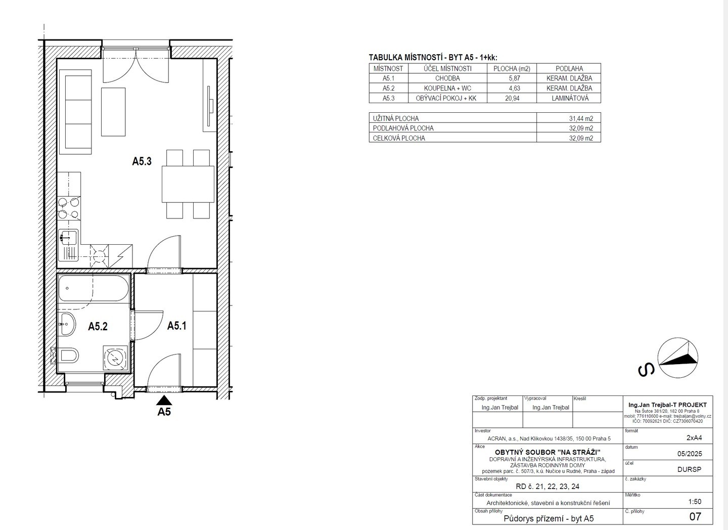 Exkluzivně nabízíme prodej bytu 1+kk, 32,09 m2 v krásné lokalitě u lesa, ul. Na Stráži, Nučice u Rudné, v nově rostoucí rezidenční lokalitě "Na Stráži". Tento velmi prostorný byt v 1.NP, 1+kk, 32,09 m2 s vyhrazeným parkováním před domem svou dispozicí nabízí příjemně světlý, prostorný obývací pokoj s kuchyňským koutem o velikosti 20,94m2, koupelna s WC a vanou 4,63m2, ostatní zázemím 5,87m2. Dokončení 4Q/2026. Dům ve kterém se bytová jednotka nachází je v krásné lokalitě Na Stráži, Nučice, je to nově vznikající rezidenční čtvrt s vlastním zázemím, s převažující zástavbou rodinnými domy, kde je kladený velký důraz na komfort a klidné bydlení u lesa. Nučice u Rudné (Praha - západ) se díky své poloze se staly velice žádanou lokalitou, a to nejen pro svou výbornou dopravní dostupnost, ale také bohatou občanskou vybavenost. Nučice a nedaleké město Rudná nabízejí bydlení v krásné přírodě, přesto však s veškerým komfortem a splněnými požadavky na aktivní život v této moderní době. Najdete zde mateřskou a základní školu, zdravotní středisko, zubní ordinaci, sportovní centra (moderní jízdárnu, kuželková dráha, areál pro frisbee, dva fotbalové stadiony, squash, tenis, plážový volejbal, minigolf, fitness, solárium, masáže atd.), poštu, obchody, restaurace a mnoho dalších služeb. Nučice jsou zároveň vstupní branou do kouzelných lesů Berounska, které lákají k vyjížďkám na kole po okolních cyklostezkách, nebo na rodinné výlety a pěší turistiku po krásných okolních místech jako je např. přírodní park Povodí Kačáku. Nedaleko se nachází i zatopený lom Amerika, hrad Karlštejn nebo romantické údolí řeky Berounky. Nučice a jejich okolí je místem jako stvořeným pro klidné bydlení, tak i výchovu Vašich dětí, nebo sport či relaxaci. K velkým nákupům můžete z Nučic vyrazit do blízkého komplexu, kterým je obchodní a zábavní centrum Zličín. Doporučuji prohlídku vzorového domu, kde Vám rádi poskytneme veškeré další informace a možnosti.