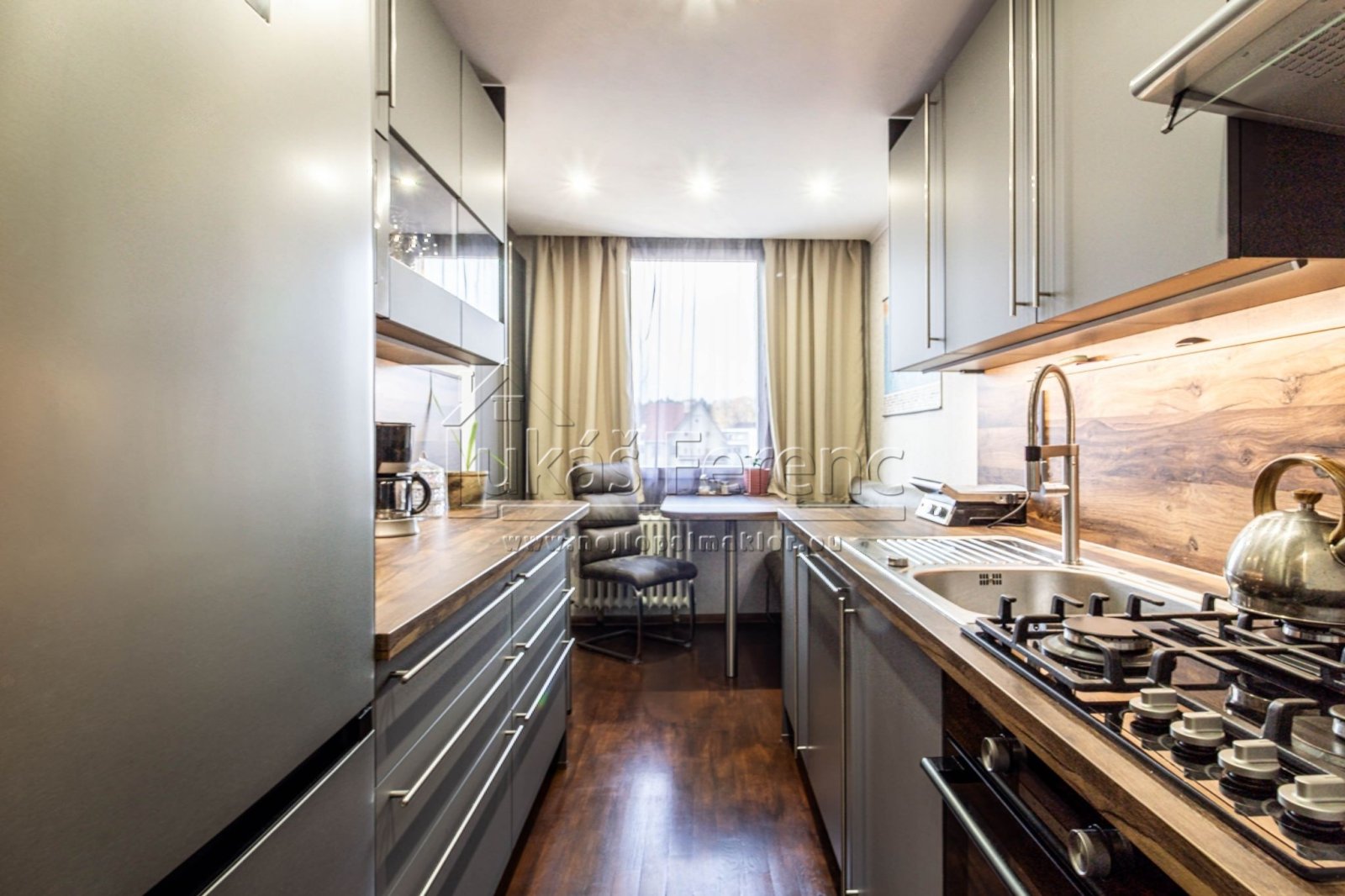 Představujeme Vám ke koupi prostorný a světlý mezonetový byt o dispozici 3+1/2xL se dvěma lodžiemi o celkové užívané ploše 74,4 m2 (z toho podlahová plocha bez lodžií činí 67,1 m2) + sklep 2 m2. Byt se nachází ve 4. nadzemním podlaží panelového domu s výtahem na adrese Plzeňská 3102, Kladno - Kročehlavy, v žádané části sídliště Sítná. Byt zaujme praktickou dispozicí i vysokým standardem vybavení. Je připojený k zabezpečovacímu systému Jablotron, přístup do bytu vede přes uzamykatelnou chodbu oddělenou od výtahů a schodiště. Kuchyňská linka na míru v hodnotě 260 000 Kč byla instalována před 2 měsíci a je vybavena vestavnými spotřebiči (myčka, plynový sporák, elektrická trouba, digestoř, lednice s mrazákem). V bytě jsou snížené stropy s bodovými světly, v ložnici i pokoji v horním patře lesklé stropní panely. V předsíni i pokojích jsou prostorné vestavěné skříně a další úložný prostor nad schodištěm. Dům má 11 nadzemních podlaží, je celkově revitalizován, má plastová okna, 2 výtahy a v přízemí kočárkárnu. Vytápění je centrální dálkové, napojení na všechny inženýrské sítě. Parkování je možné na parkovišti vedle domu nebo v přilehlých ulicích, kde bývá dostatek volných míst. Měsíční náklady činí 7 188 Kč/ 3os, z toho fond oprav 2 380 Kč. Lokalita Plzeňská - Sítná nabízí veškerou občanskou vybavenost a špičkovou dopravní dostupnost. V okolí najdete Sportovní gymnázium Kladno (238 m), MŠ Lenka Honsová (118 m), Albert (735 m), Lékárnu Sítná (113 m), Poštu Kladno 1 (1,1 km), restauraci Krušovickou (180 m), dětské hřiště Plzeňská (60 m), kino Hutník (218 m) a Divadélko U Zvonu (970 m). V docházkové vzdálenosti je také ČVUT - fakulta biomedicínského inženýrství a několik fitness center. Pro milovníky sportu a odpočinku je v blízkosti Sportovní areál Sletiště - krytý i venkovní aquapark, stadion s dráhou pro kola a in-line brusle, workoutová hřiště a lanové centrum. Za ním navazuje jezdecká farma a rozsáhlý lesopark Smetiště, ideální pro procházky, běh, cyklistiku i sběr hub. V létě je oblíbená rekreační oblast Bažantnice s otevřenými bazény a travnatými loukami. V okolí nechybí ani rozsáhlá nákupní infrastruktura - Tesco, Kaufland, Billa, Albert, Penny Market, Norma a OC Central Kladno; plánována je výstavba Globus. V docházkové vzdálenosti banky (KB, Česká spořitelna, Raiffeisenbank), Baumax i kulturní centrum Kladno. Zastávka MHD „Kladno, Sítná“ je cca 238 m od domu, železniční stanice Kladno-město 1,2 km. Do Prahy (Ruzyně / Dejvice) trvá cesta autem cca 19 minut (26 km) nebo vlakem asi 40 minut. Byt je vhodný jak pro rodiny s dětmi, tak jako bezpečná investice s výnosností kolem 3,7 % ROI. Financování je možné hypotékou, kterou rádi pomůžeme zajistit.