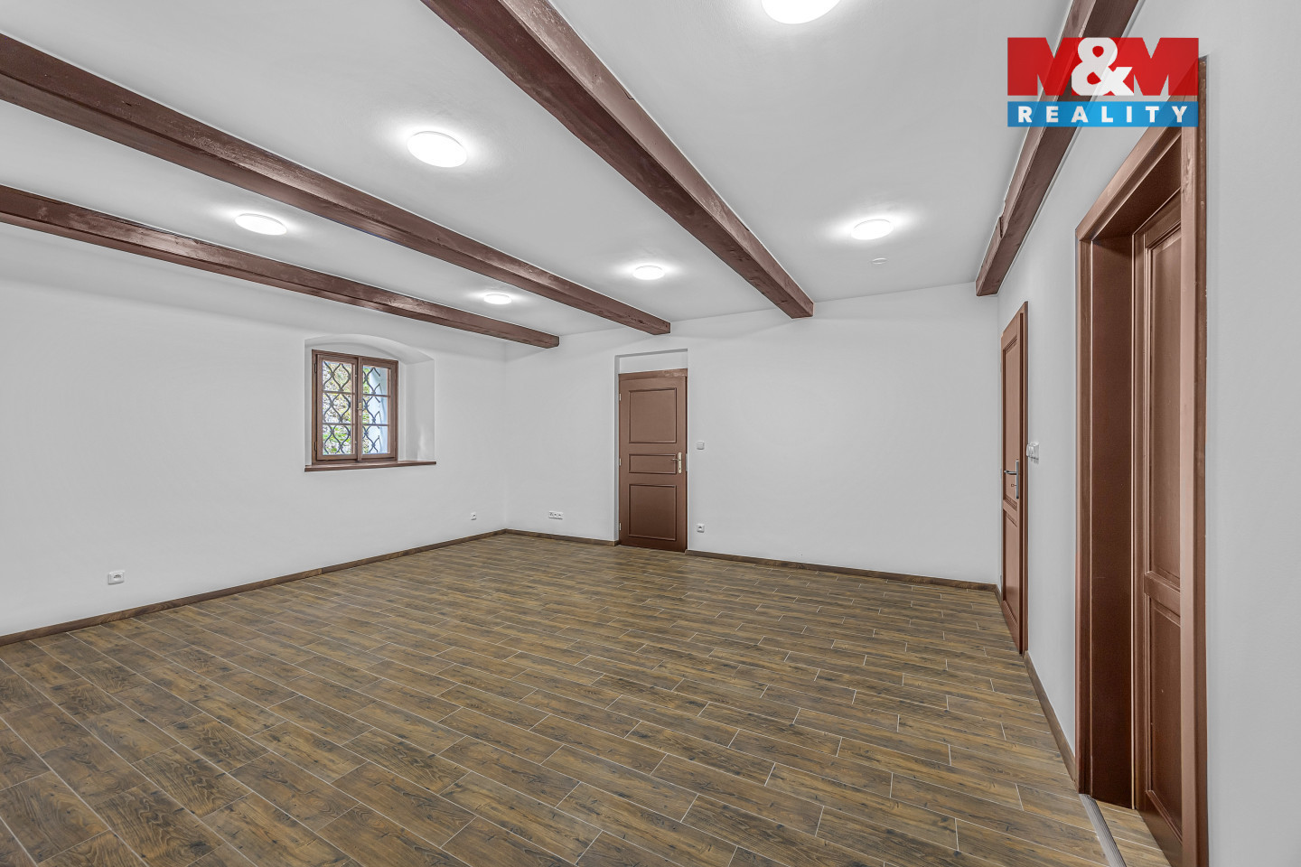 Nabízíme prostorný apartmán/nebytovou jednotku 3+kk v části obce Líšnice u Prahy. Jedná se o apartmán o užitné ploše 86 m2 a podlahové ploše 92,9 m2, k němuž náleží i 55 m2 soukromé předzahrádky s nočním osvětlením. Vyhrazena jsou dvě parkovací místa u domu. K apartmánu patří zděný sklep v přízemí 5 m2 s oknem (možnost odkoupení i dalšího sklepa). Dominantou je prostorný obývací pokoj s přípravou pro kuchyňskou linku o ploše téměř 30 m2 s nadstandardní dlažbou a podlahovým topením. Větší pokoj má 21,7 m2 a menší pokoj pak 12 m2. Koupelna s plochou 6,6 m2 je vybavena vanou, toaletou, umyvadlem, elektrickým bojlerem a přípravou na pračku. Přívod vody je zajištěn z místní studny v majetku SVJ. V bezprostředním okolí nalezneme krásnou přírodu, v obci Líšnice je základní občanská vybavenost vč. mateřské a základní školy a čerpací stanice. Mníšek p/Brdy je vzdálen 9 km, okraj Prahy je vzdálen 10 km. Na tomto zajímavém místě se snoubí historický šarm s moderním komfortem.