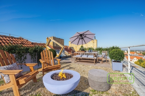 NÁDHERNÁ TERASA, NEBE NAD HLAVOU A BRANDÝS JAKO NA DLANI! Hledáte byt, který má šmrnc, osobitý styl a dechberoucí výhledy? Zapomeňte na tuctové byty bez duše. Tenhle je jiný. Tady se žije s nadhledem ... a to doslova ! Ve 4. patře (ano, bez výtahu - ale za tu TERASU to prostě stojí! ) v srdci Brandýsa nad Labem na vás čeká světlý a vzdušný byt 2+kk s potenciálem na 3+kk o užitné ploše 99,3 m2. Třešničkou na dortu je soukromá střešní terasa o velikosti cca 50 m2, kam vystoupáte vlastním schodištěm přímo z bytu - aktuálně jsou tam základní schůdky, ale máme pro vás vizualizaci možného řešení pro pohodlný přístup. Představte si letní večery s vínem, grilovačky s přáteli nebo ranní kávu s výhledem na zámeckou zahradu a okolní lesy… Byt má vysoké stropy s přiznanými trámy, přirozené světlo a naprosto jedinečnou atmosféru. Dispozice lze snadno upravit na plnohodnotné 3+kk, což je možné si případnou přestavbu prohlédnout ve fotogalerii díky připravené vizualizaci a alternativnímu půdorysu. Přednosti prodávané nemovitosti : • Celková užitná plocha: 99,3 m2 • Terasa: cca 50 m2 • Centrum Brandýsa - vše pěšky: škola, školka, obchody, kavárny, park, cyklostezka • možnost si předělat byt ze současné dispozice 2+kk na plnohodnotné 3+kk • spousta světla, atmosféra, která tě obejme Všechno, co potřebujete k pohodlnému životu, máte pár kroků od domu. Tak co říkáte? Tenhle byt si vás získá hned při první návštěvě. Je to místo s duší, s výhledem, který vás nikdy neomrzí a s potenciálem vytvořit si domov přesně podle svých představ. Přijďte se podívat - vážně to stojí za to. Třeba právě tady začíná váš nový příběh… Budu se na vás těšit.