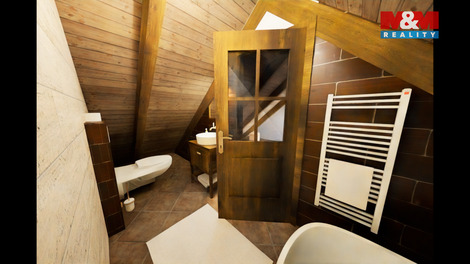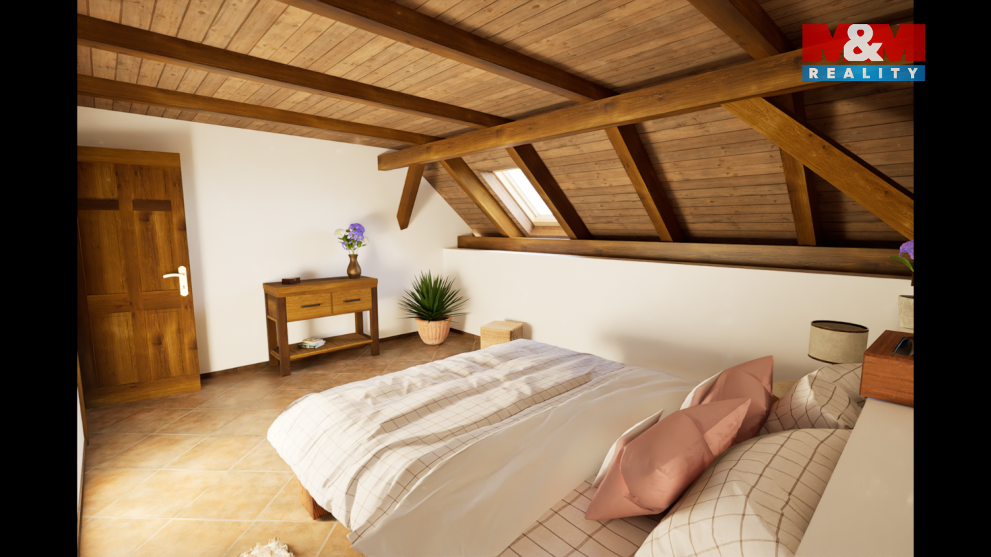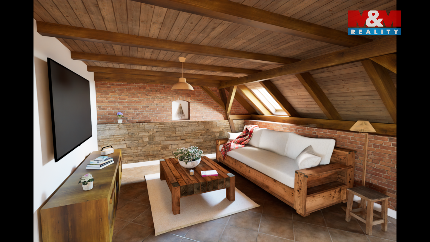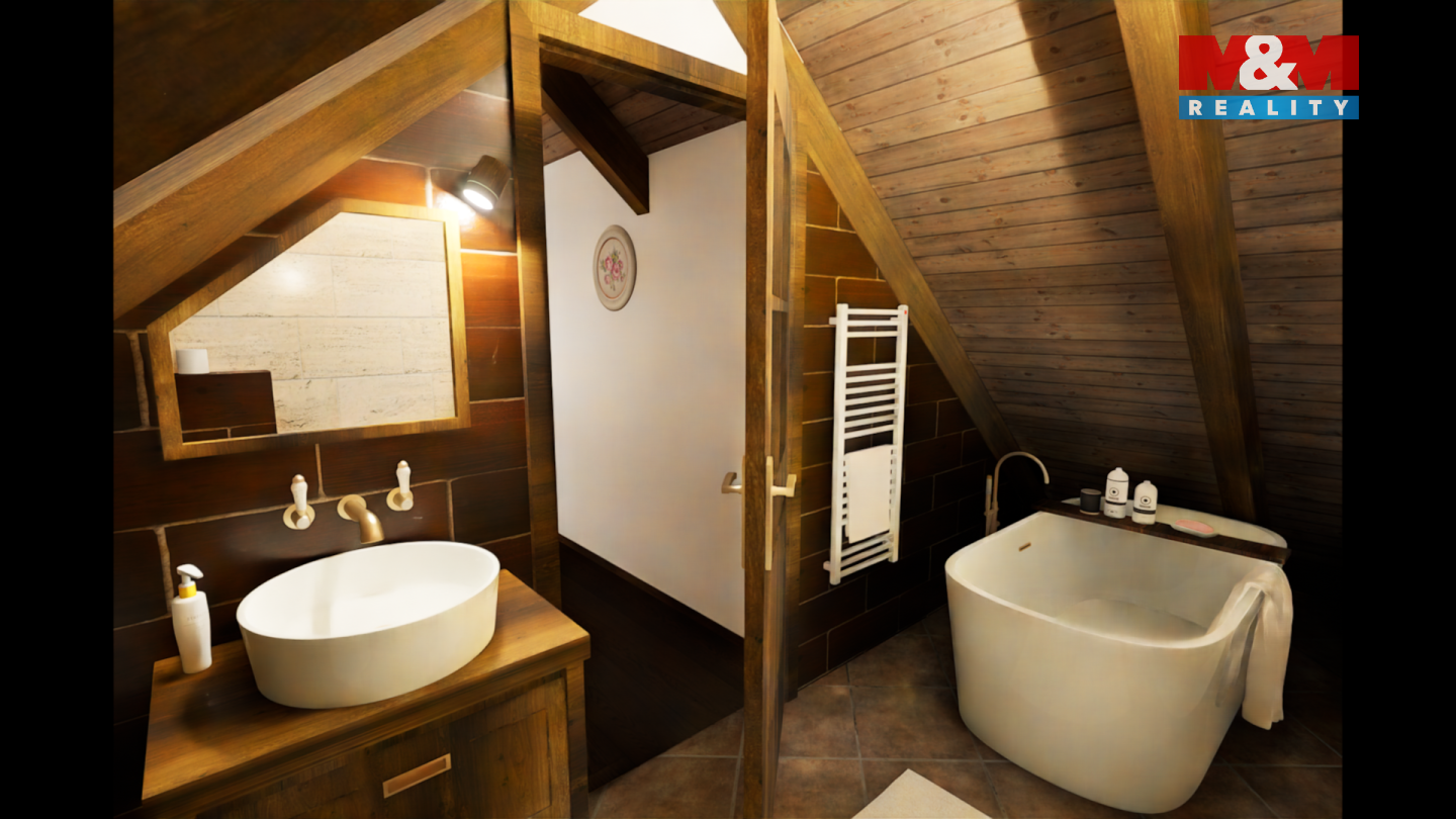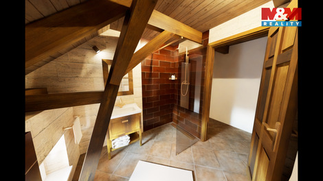 Tento podkrovní mezonetový byt se nachází ve 2.NP rekonstruovaného domu, ve kterém je více bytů venkovského stylu. Ve spodním podlaží bytu je obývací pokoj s kuchyňským koutem, ložnice a koupelna s WC. V patře pak další koupelna s WC a dvě ložnice. Orientace bytu je východ a západ. Dům je zateplen, na střeše jsou nové betonové tašky, PENB typu B. Nízké náklady na energie a vodu. Topení a teplá voda je tepelným čerpadlem, vytápění v podlaze. Voda obecní vodovod, splachování dešťovka. Okna plastová, trojsklo, na zemi dlažba a plovoucí podlaha. V domě je bezdrátový internet a společná anténa. Součástí kupní ceny jsou: podlahy, zárubně, dveře, koupelna vč. obkladů, sanity a skříňky pod umyvadlo a plně vybavená kuchyňská linka. Ve dvoře objektu bude park s lavičkami a herními prvky pro děti, dále wellness. Parkování zajištěno, možnost i dokoupení garáže. Na snímcích použita vizualizace. Byt číslo 9.