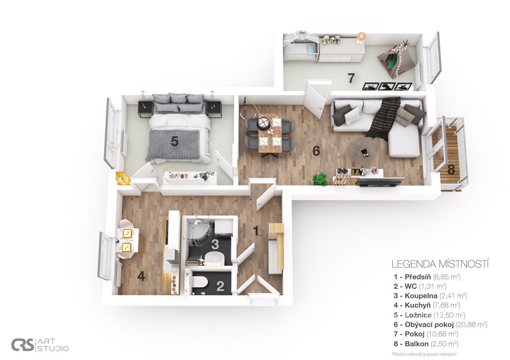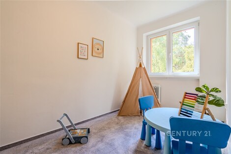 Prostorný a světlý byt s balkonem, příroda i centrum na dosah. Nabízíme k pronájmu byt 3+1 o užitné ploše 64,7 m2, který se nachází ve 2. nadzemním podlaží zatepleného cihlového domu v klidné zástavbě nízkopodlažních budov obklopených zelení. Byt je ve výborném stavu a díky své orientaci působí velmi světlým a příjemným dojmem. Dominantou bytu je prostorný obývací pokoj situovaný na jih s francouzským oknem a vstupem na balkon, z něhož je krásný výhled do klidu se zeleně. Samostatná kuchyň je plně vybavena. Ložnice i dětský pokoj poskytují dostatek prostoru pro pohodlné rodinné bydlení. Praktické je také oddělené WC a koupelna, obě místnosti jsou plně vybavené. K bytu náleží sklep a k dispozici jsou i společné prostory včetně kočárkárny. Samotný dům se nachází v klidné části Kladna, kde je v pěší vzdálenosti kompletní občanská vybavenost. Autobusová zastávka MHD je jen 3 minuty od domu, vlaková stanice s přímým spojením do Prahy přibližně 10 minut chůze. Autem jste na okraji Prahy do 15 minut. Milovníky přírody potěší blízké lesoparky protkané cyklostezkami, které vedou až do CHKO Křivoklátsko. Pokud hledáte komfortní bydlení v klidné lokalitě s výbornou dostupností do Prahy i do přírody, rádi vás pozveme na osobní prohlídku. Nájemné 19.500 Kč/měs., poplatky 2 osoby cca 5.500Kč/měs., elektřina převod na nájemníky, kauce 30.000 Kč, provize RK 19.500 Kč.