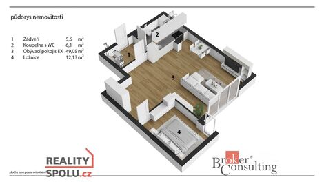 Nabízíme k prodeji krásný byt 2+kk o celkové ploše 49 m2, situovaný ve 3. patře osmipodlažního panelového domu v klidné části Kladna. Tento byt…