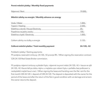 Nabízíme vám v dlouhodobému pronájmu byt s dispozicí 3+kk a výměrou 70 m2 v obci Nová Ves (Praha-východ). Byt se nachází v prvním patře a je úplně nový. V bytě ještě nikdo nebydlel a budete jeho první nájemníci. Tento byt obsahuje velký obývací pokoj s kuchyňským koutem, dvě ložnice, koupelnu s wc. Jedná se o moderní byt. K bytu patří jedno parkovací místo před domem. Nájemné je 19.000,- Kč / měsíčně + zálohy na 5.120,- zálohy na energie a služby (z toho je 1000,-/měs. voda, 2500,- topení, 20,-/měs. elektřina v domě, 100,-/měs. na osobu za odvoz odpadků, 1000,- /měs. elektřina v bytě). V bytě je topení vyřešeno radiátory s centrálním vytápěním a ohřev teplé vody elektrickým bojlerem. V bytě kompletně vybavená kuchyňská linka a koupelna, tak jak je vyobrazeno na fotografiích. Jinak je byt prázdný. Při nastěhování se platí 24.120,- nájemné na první měsíc + 24.120,- kauce + 24.120,- provize. <a href="https://www.eurobydleni.cz/byty/3_1/praha-4/obec-michle/pronajem/"><strong>Pronájem bytu 3+1 Praha 4, Michle</strong></a>
