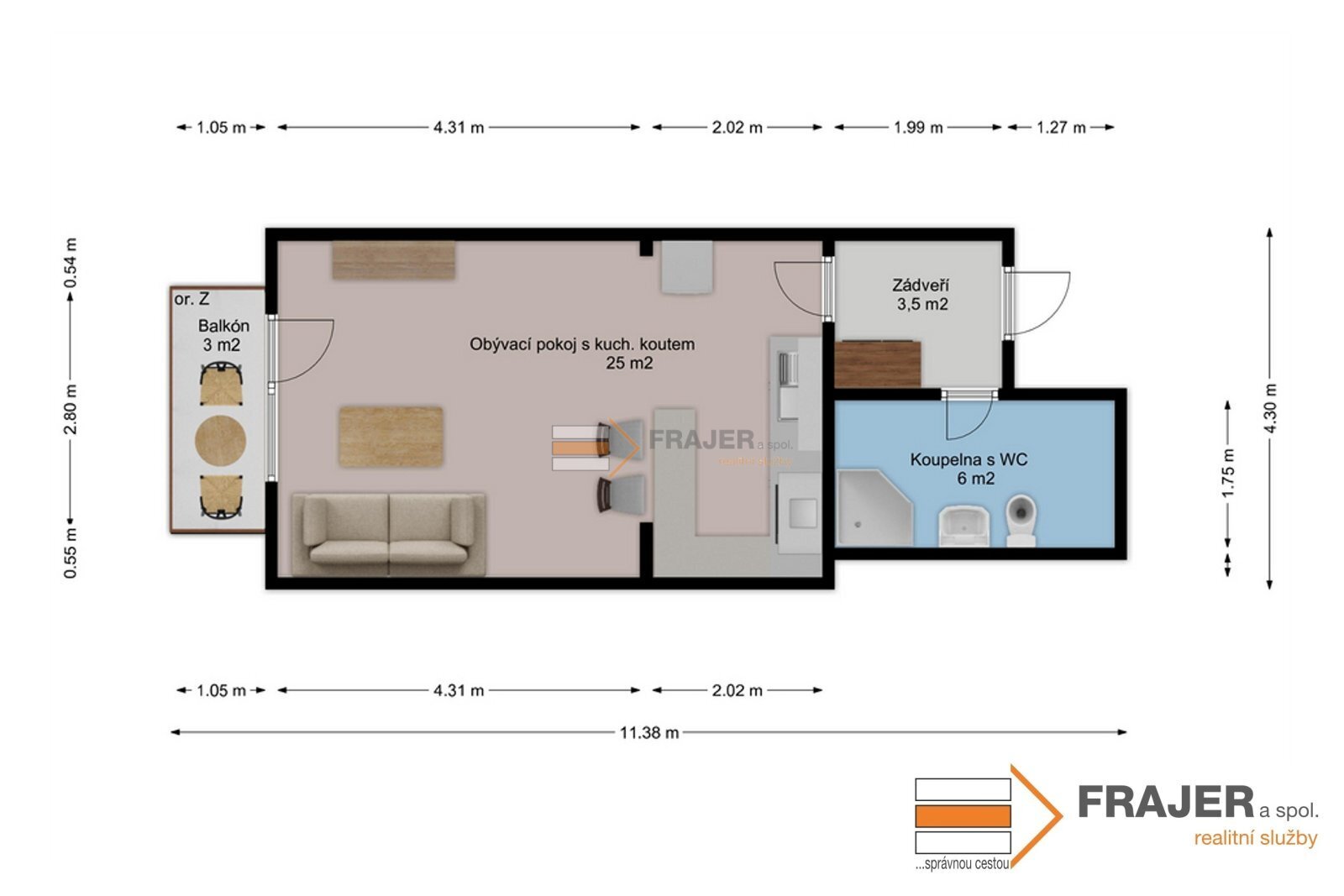Nabízím Vám ke koupi hezký a částečně zařízený byt o dispozici 1+kk/B (37 m2) ve 2. NP bytového domu v ulici U Dráhy, Chýně. V bytě se nachází obývací pokoj (skříň, komoda, apod.) s kuchyňským koutem (velká kuchyňská linka, chladnička s mrazničkou, myčka, elektrická varná deska, elektrická trouba, mikrovlnná trouba, apod.), sociální zařízení (koupelna se sprchovým koutem, WC, pračkou a tech. zařízením), předsíň s vestavěnou skříní a balkón (3 m2). Byt je udržovaný se zánovním vybavením. Parkovat je možné na vlastním parkovacím místě přímo před domem. Byt má nízké provozní náklady, měsíční záloha na služby činí 1.000,-Kč + záloha na dodávku elektřiny. Bytový dům je dřevostavba postavený firmou RD Rýmařov a je pečlivě udržovaný. Občanská vybavenost je v blízkém okolí a dále v Rudné či v Praze - Zličín. Vlaková stanice a zastávka autobusu 500m od domu. Byt je ideální k vlastnímu bydlení či jako investice na pronájem.